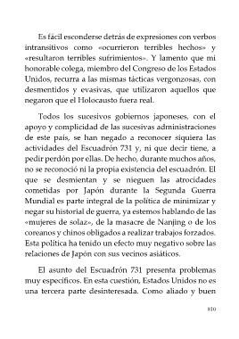El asunto del Escuadrón 731 presenta problemas