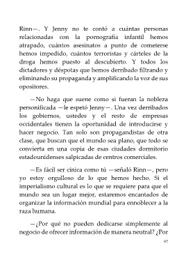 —Es fácil ser cínica como tú —señaló Rinn—, pero