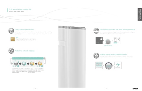 Kohler water softener applies food class Rohm and Hass polyester resin, which is certified by Economic and green, dual regenerating system saves the saline and water by avoiding water