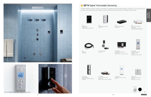 experiences, hydro-massage and temperature treatment programs, and integrated controls of Kohler steam, audio, lighting and chromatherapy.