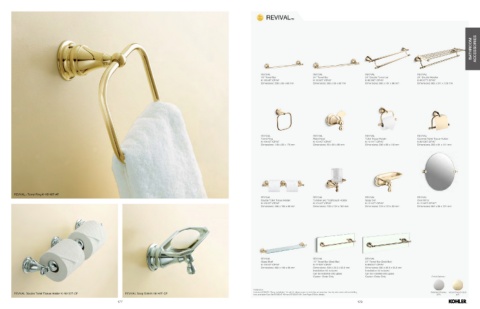 REVIVAL Double Toilet Tissue Holder K-16152T-CP REVIVAL Soap Dish K-16142T-CP Includes KOHLER "Easy Installation" kit which allows users to stick the accessories directly onto walls without drilling Polished Chrome Vibrant French Gold