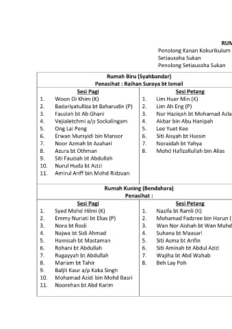 1. Syed Mohd Hilmi (K) 1. Nazifa bt Ramli (K) 1. Nazilah bt Ismail (K) 1. Nor Hidayatul Akmal (K)