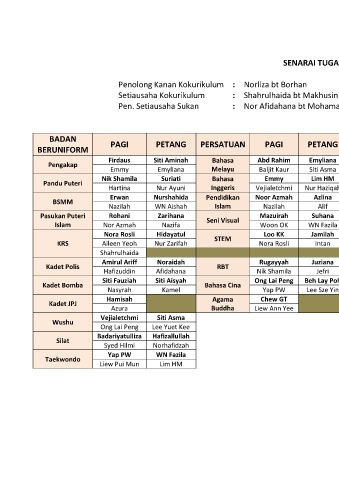 Penolong Kanan Kokurikulum : Norliza bt Borhan Setiausaha Sukan : Muhd Hafizuddin bin Mohd Nawawi