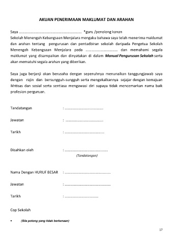 AKUAN PENERIMAAN MAKLUMAT DAN ARAHAN