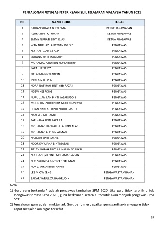 1) Guru yang bertanda * adalah pengawas tambahan SPM 2020. Jika guru tidak terpilih untuk