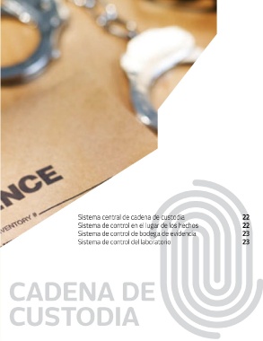 Sistema central de cadena de custodia 22 Sistema de control en el lugar de los hechos 22 Sistema de control de bodega de evidencia 23 Sistema de control del laboratorio 23 CADENA DE CUSTODIA
