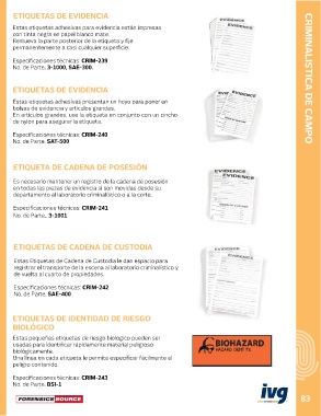 ETIQUETAS DE EVIDENCIA CRIMINALISTICA DE CAMPO