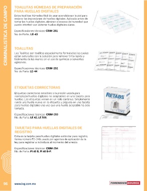 CRIMINALISTICA DE CAMPO TOALLITAS HÚMEDAS DE PREPARACIÓN