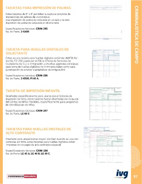 TARJETAS PARA IMPRESIÓN DE PALMAS CRIMINALISTICA DE CAMPO
