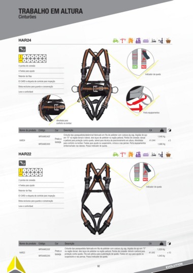 HAR24 laranja e peitoral para proteção contra queda, lateral para técnica de posicionamento em altura. Almofadas 41.044 x 5