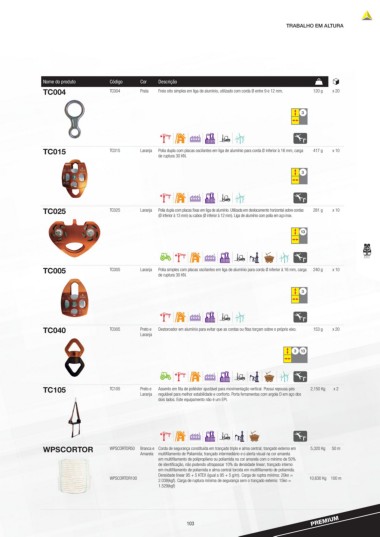 (Ø inferior à 13 mm) ou cabos (Ø inferior à 12 mm). Liga de alumínio com polia em aço inox.