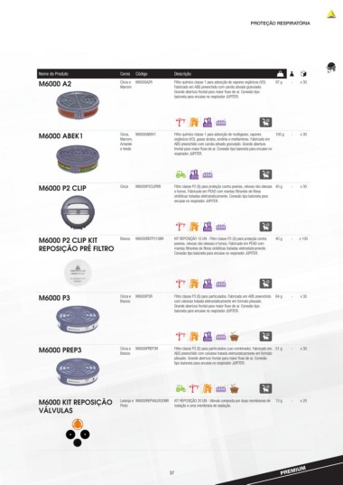 M6000 P3 Cinza e M6000P3R Filtro classe P3 (S) para particulados. Fabricado em ABS preenchido 64 g - x 30