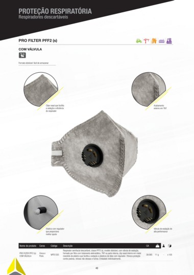 Respirador semifacial descartável, classe PFF2 (s), modelo dobrável, com válvula de exalação,