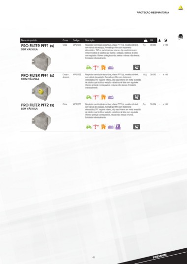 PRO FILTER PFF1 (s) Cinza e WPS1135 Respirador semifacial descartável, classe PFF1 (s), modelo dobrável, 11 g 39.082 - x 100