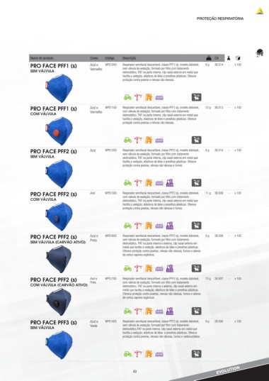PRO FACE PFF2 (s) Azul e WPS1700 Respirador semifacial descartável, classe PFF2 (s), modelo dobrável, 13 g 38.507 - x 100