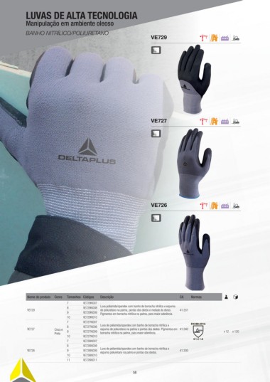 9 VE729NO09 Pigmentos em borracha nitrílica na palma, para maior aderência.