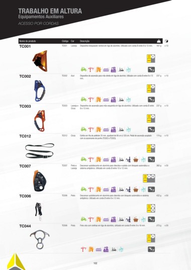 antipânico. Utilizado em corda Ø entre 9 e 12 mm.