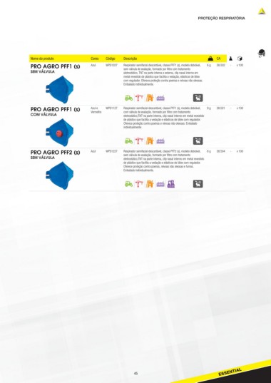 PRO AGRO PFF1 (s) Azul e WPS1127 Respirador semifacial descartável, classe PFF1 (s), modelo dobrável, 9 g 38.501 - x 100