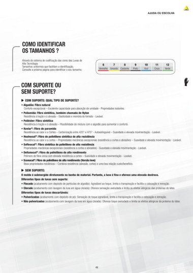 • Pulverizadas (acabamento com depósito de pó): Sensação de toque agradável, limita a transpiração e facilita a colocação e remoção.