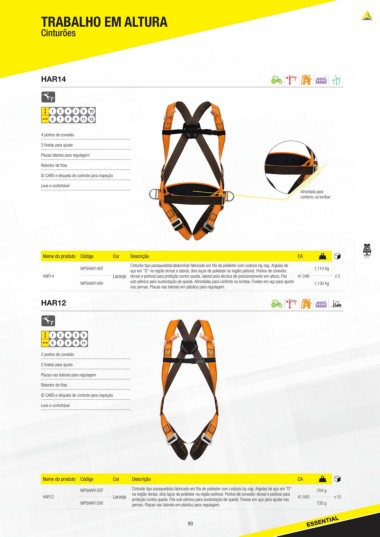 HAR12 Laranja na região dorsal, dois laços de poliéster na região peitoral. Pontos de conexão: dorsal e peitoral para 41.045 x 10