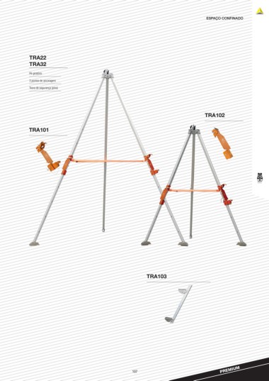 ESPAÇO CONFINADO TRA22 TRA32 Pé giratório 3 pontos de ancoragem Trava de segurança (pino) TRA102 TRA101 TRA103 PREMIUM 107