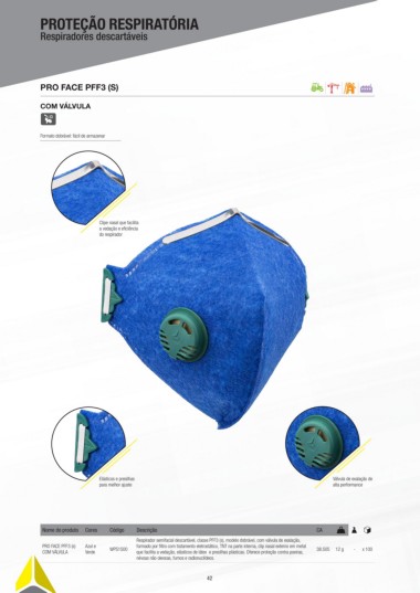 Respirador semifacial descartável, classe PFF3 (s), modelo dobrável, com válvula de exalação,