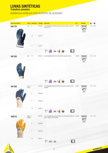 Nome do produto Cores Tamanhos Códigos Descrição CA Normas