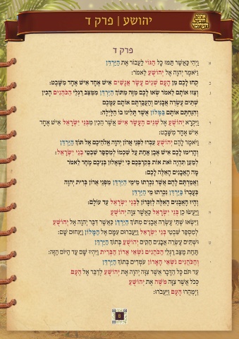 ַוִּי ְקָרא ְיהֹוֻׁש ַע ֶאל ְׁש ֵנים ֶה ָעָׂשר ִאיׁש ֲאֶׁשר ֵה ִכין ִמְּב ֵני ִיְׂשָר ֵאל ִאיׁש ֶא ָחד