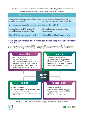 Jadual 2.3 menunjukkan perbezaan antara barometer Fortin dengan barometer Aneroid.