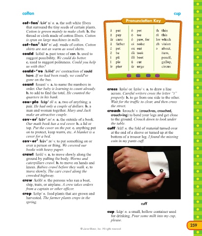cot•ton /kŏt′ n/ n. a. the soft white fibers Pronunciation Key