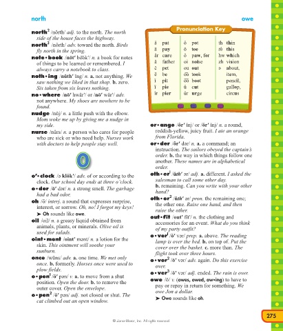north /nôrth/ adv. toward the north. Birds ă pat ŏ pot th thin
