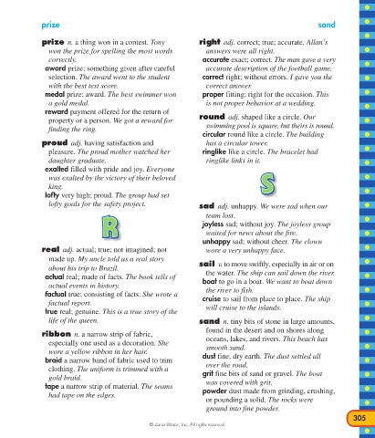prize n. a thing won in a contest. Tony right adj. correct; true; accurate. Allan’s