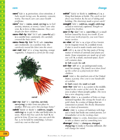 care /kâr/ v. (cares, cared, car•ing) a. to feel caught /kôt/ v. (catch•es, caught, catch•ing)