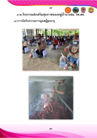 39 ๔.๒ กิจกรรมสงเสริมสขภาพของหมูบ้าน อสม. รพ.สต. ่ ุ ่ ู ุ ้ ๑) การจัดกิจกรรมการดูแสผูสงอาย 39