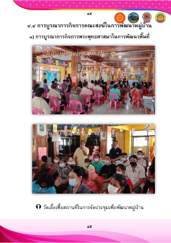 45 ่ ์ ๔.๔ การบูรณาการกิจการคณะสงฆในการพัฒนาหมูบ้าน ้ ื ี ่ ๑) การบูรณาการกิจการพระพุทธศาสนาในการพัฒนาพนท วัดเอือเฟอสถำนทีในกำรจัดประชุมเพื่อพัฒนำหมู่บ้ำน ื ้ ้ ่ 45