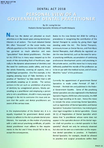 equally important for government dental practi- 34 (1) of Registration of Dental Specialist which