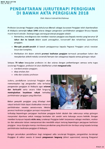 memberi tumpuan kepada niche area, Juruterapi Pergigian boleh berperanan sebagai mediator, motiva-