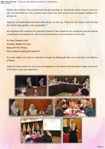 MDC BULLETIN | DATUK DR NOOR ALIYAH’S FAREWELL