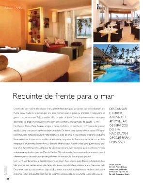 Integrado à exuberante fauna e flora, o Barceló Bávaro Beach Resort é ideal para quem deseja pra- O VIAJANTE