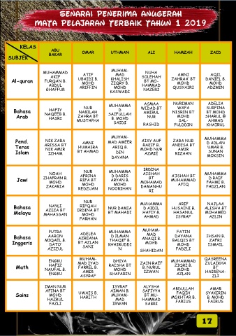 MATA PELAJARAN TERBAIK TAHUN 1 2019