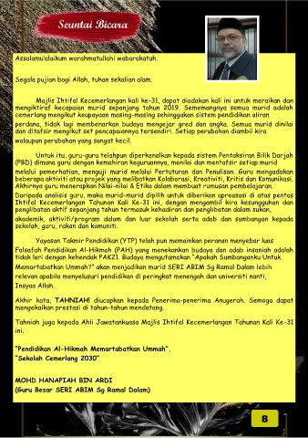 Page 8 - BUKU CENDERAMATA MAJLIS IHTIFAL KECEMERLANGAN KALI KE-31 (2019) SERI & SEMI ABIM SG. RAMAL, KAJANG