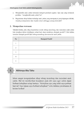 b. Bagaimana sikap kalian terhadap anak yatim yang mempunyai penyimpangan akhlak,