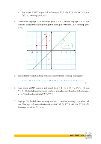 e. Segi empat WXYZ dengan titik sudutnya di W (2, –1), X (5, –2), Y (5, –5), dan