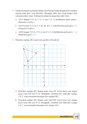 5. Gambar bayangan tranformasi untuk setiap segitiga berikut dengan mencerminkan