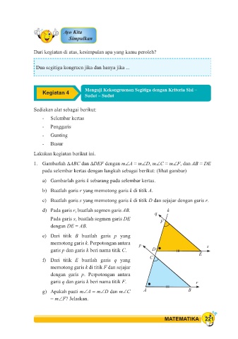 Kegiatan 4 Menguji Kekongruenan Segitiga dengan Kriteria Sisi –
