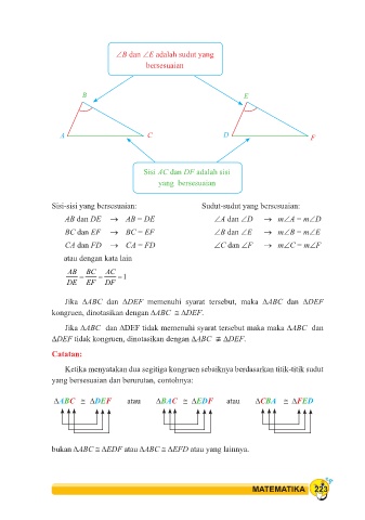 bukan ΔABC ≅ ΔEDF atau ΔABC ≅ ΔEFD atau yang lainnya.