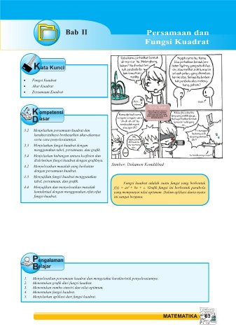 4.4 Menyajikan dan menyelesaikan masalah f(x) = ax + bx + c. Grafik fungsi ini berbentuk parabola