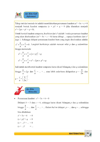 menjadi bentuk kuadrat sempurna (x + p) + q = 0 (jika diuraikan menjadi
