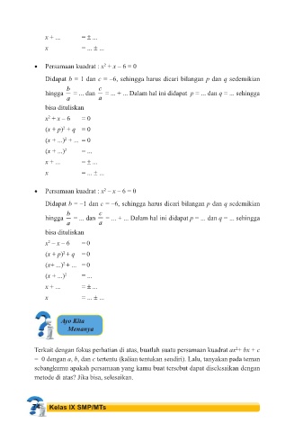 • Persamaan kuadrat : x + x – 6 = 0