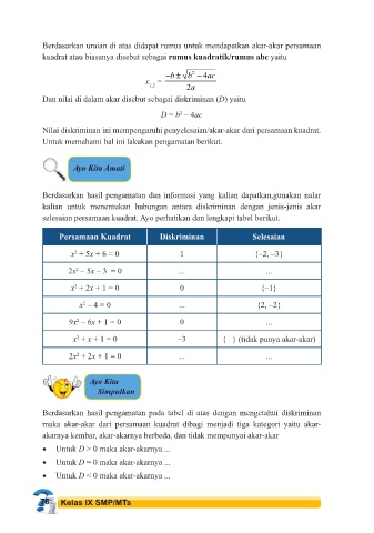 Nilai diskriminan ini mempengaruhi penyelesaian/akar-akar dari persamaan kuadrat.